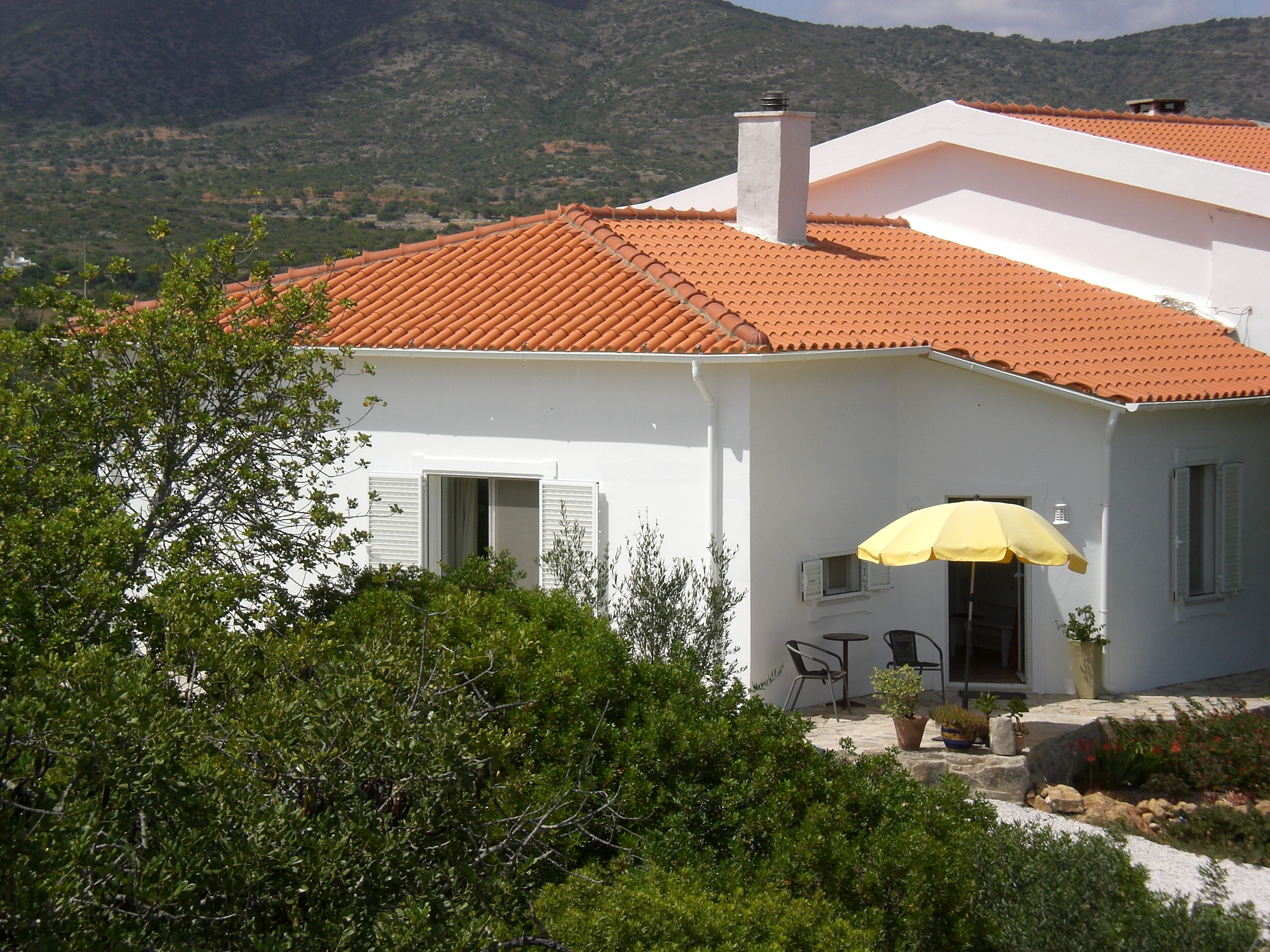 Typisch portugiesisches Landhaus, 110qm2 Wohnraum , zwei Schlafzimmer, grosses Bad mit Wanne/Dusche, Essraum und grosser Wohnraum, Dach- und Gartenterrasse, Platz fuer 5 Personen, schöner Meerblick.